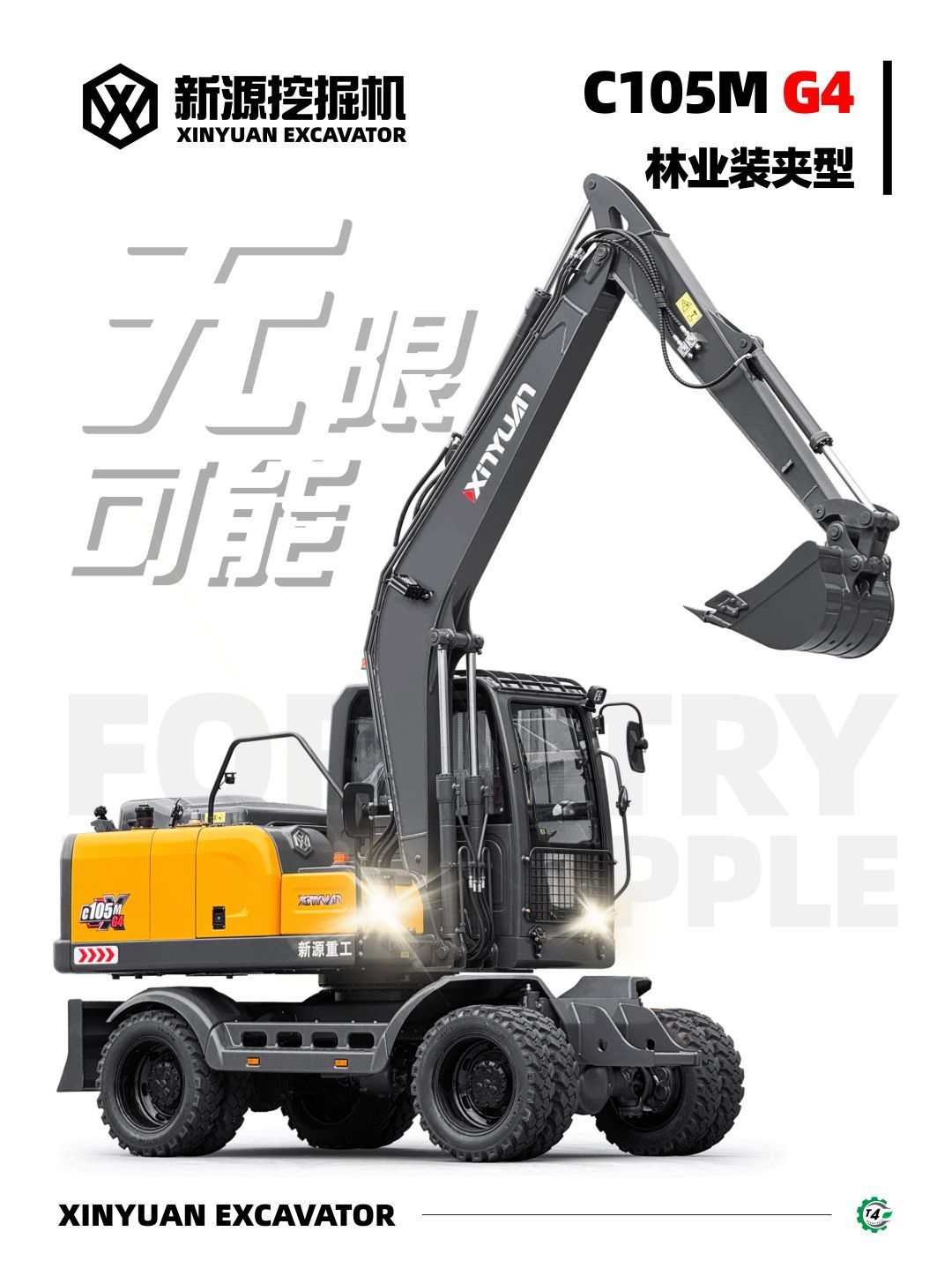 U乐国际C130MG4轮式挖掘机! 为林业装夹作业设计推出的新一代产品,,,,,,搭载玉柴F36系列发念头,,,,,,巨细臂总长度合计约6.5m,,,,,,周全提升您的生产力!